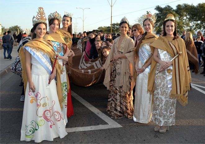 Es de destacar también la presencia de distintas reinas de otras fiestas nacionales, quienes llegaron para homenajearnos en nuestro Poncho de Oro y participaron de la marcha, ellas son, la Reina Nacional del Sol, Abril Oyola de San Juan, la Reina Nacional del Maní, Candelaria Fessia de Hernando provincia de Córdoba, la Reina Nacional de la Citricultura, Selena Ferrari de Concordia, provincia de Entre Ríos, la Reina Nacional de la Olivicultura, Kuhn Fernández Tamara de La Rioja, y la Reina del Festival Nacional e Internacional de Peñas, Camila Anabel Segura de Villa María provincia de Córdoba.