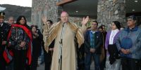 placas conmemorativas del "Poncho de Oro”. En su oración, expresó: "Te pedimos,
