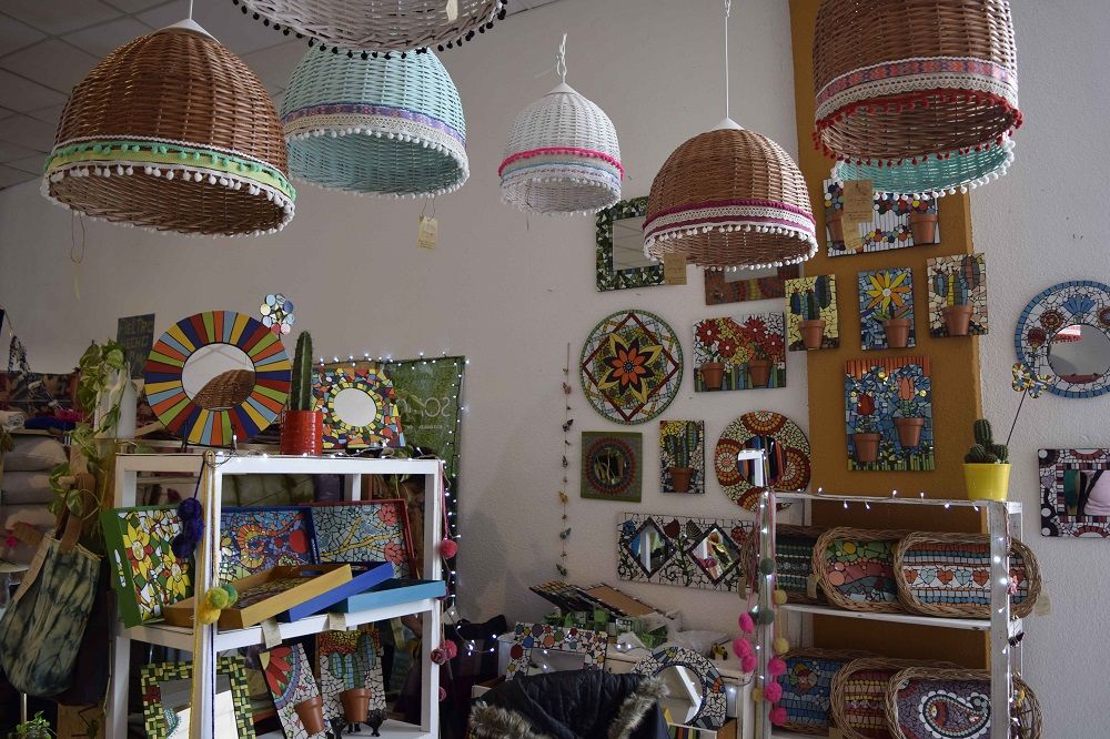Además de objetos para llevar, ofrecen servicios de intervenciones domiciliarias, ya que la misma técnica se suele aplicar para ambientar espacios como baños, galerías, cocinas, etc.