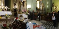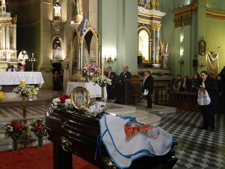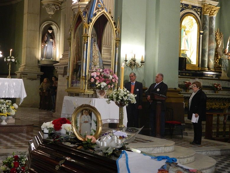 Se vivió una jornada especial, con la Bajada de la Sagrada Imagen cuatro veces centenaria desde su Camarín hasta el Presbiterio, en brazos del Obispo Diocesano, Mons. Luis Urbanc, quien presidió misa exequial, concelebrada por una decena de sacerdotes del clero local y otros venidos de provincias vecinas, que llegaron especialmente para despedir a la querida Rina.