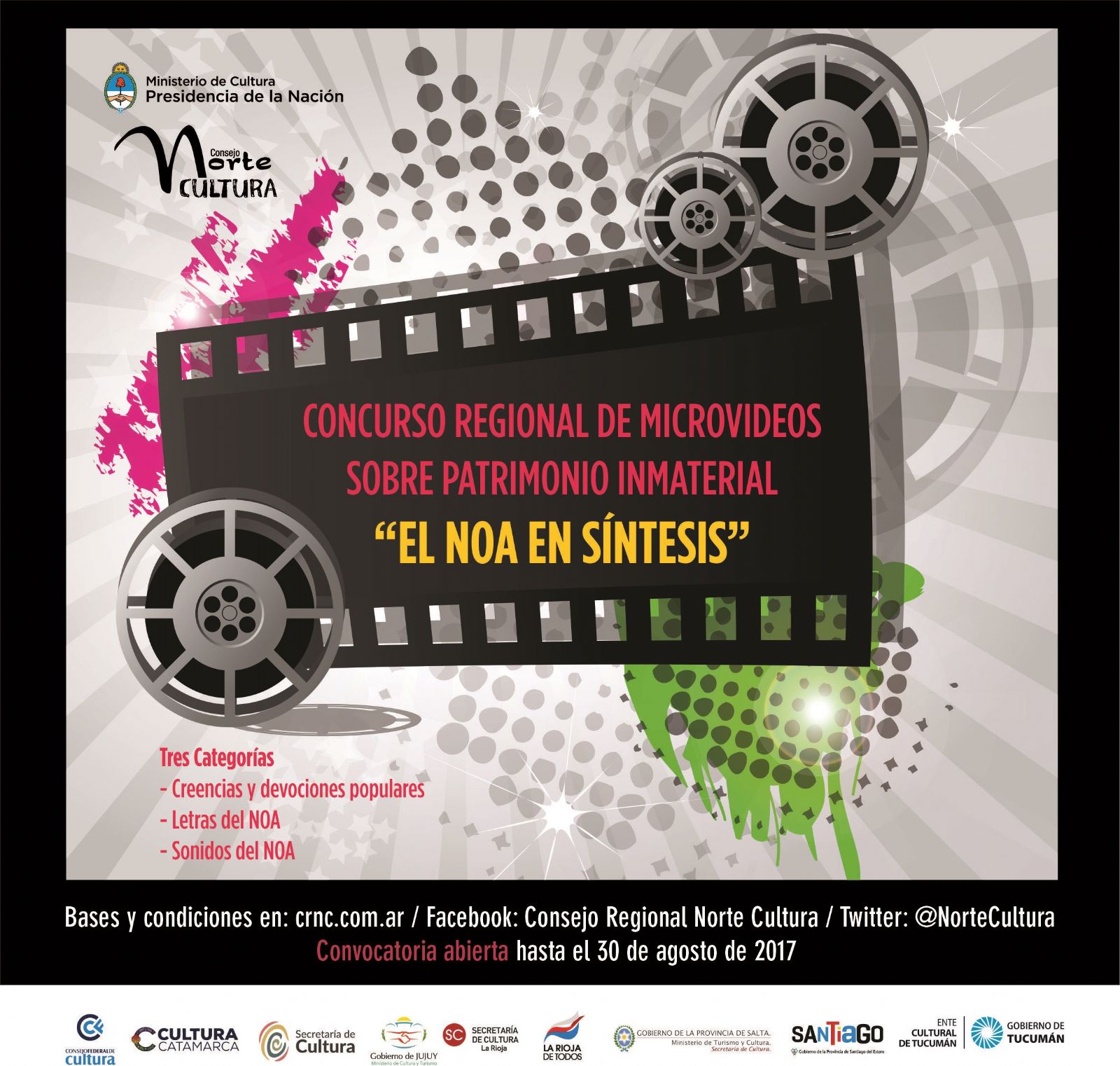 El concurso contempla dentro de la temática del patrimonio inmaterial, tres categorías: "Creencias y devociones populares del NOA”, "Letras del NOA” y "Sonidos del NOA” y recibe propuestas hasta el 30 de agosto de 2017.