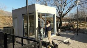 sucursal Andalgalá. Actualmente se están colocando los vidrios blindados en