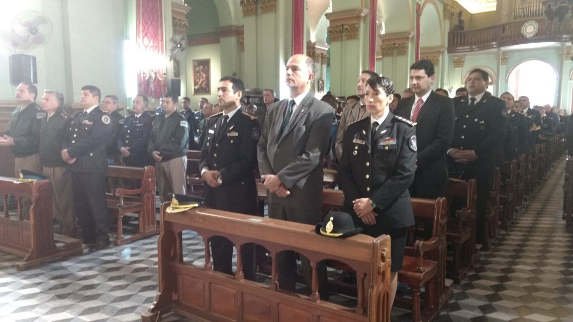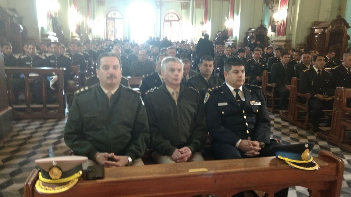Policías en la Galería Institucional de Jefatura de Policía. Dicha acto se