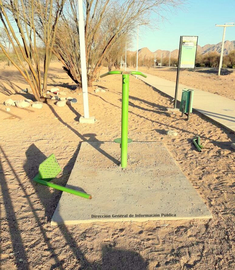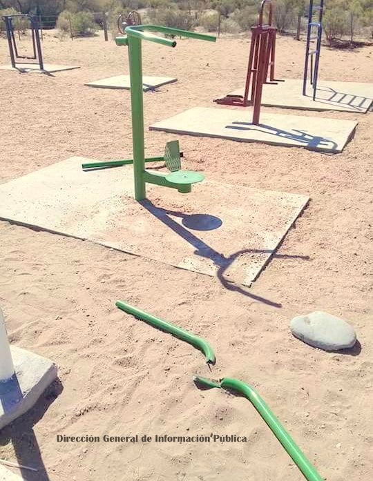 En el lugar, tres de los aparatos de gimnasia se encontraba destrozados,
