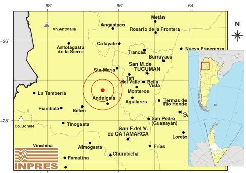 Epicentro: 133 km al O de San Miguel De Tucumán, 151 km al NO de San F. Del Valle De Catamarca, 40 km al N de Andalgalá. -27.244 (lat) -66.453 (long)