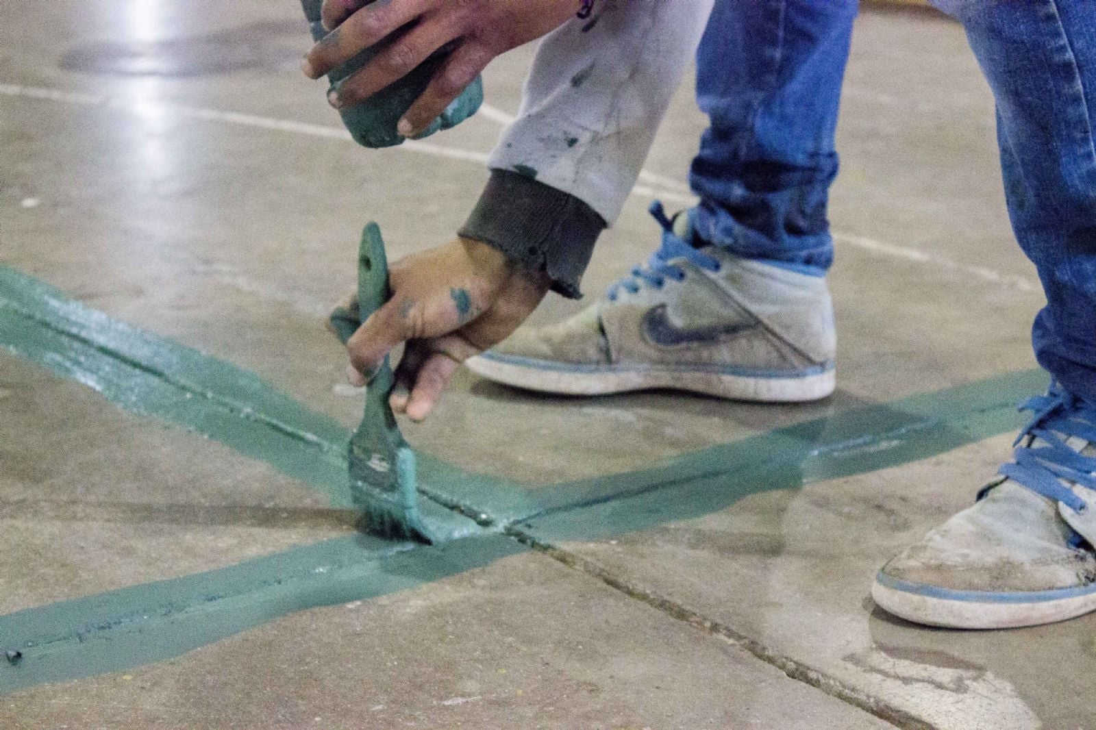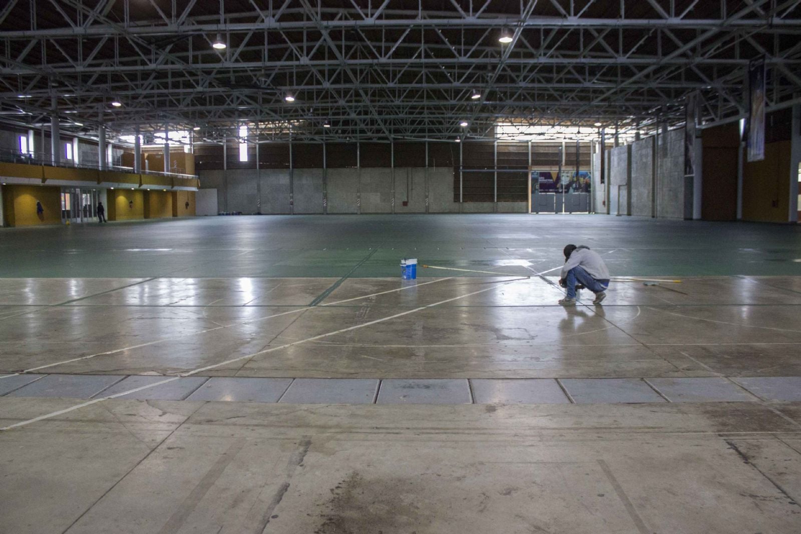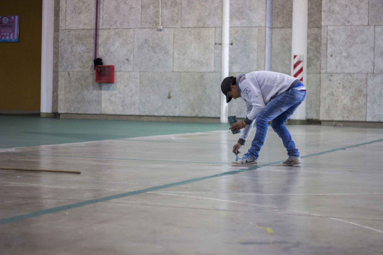 del piso del Salón Mayor, tarea que se realiza por estos días a partir de
