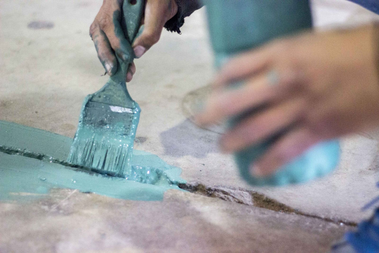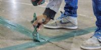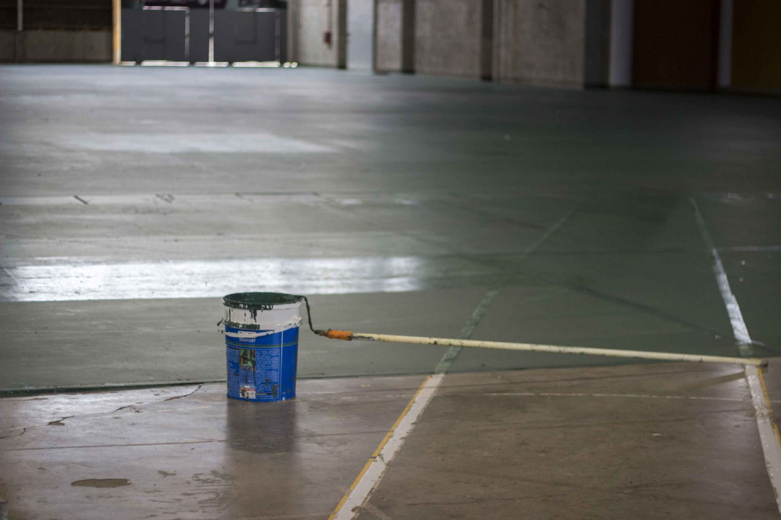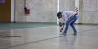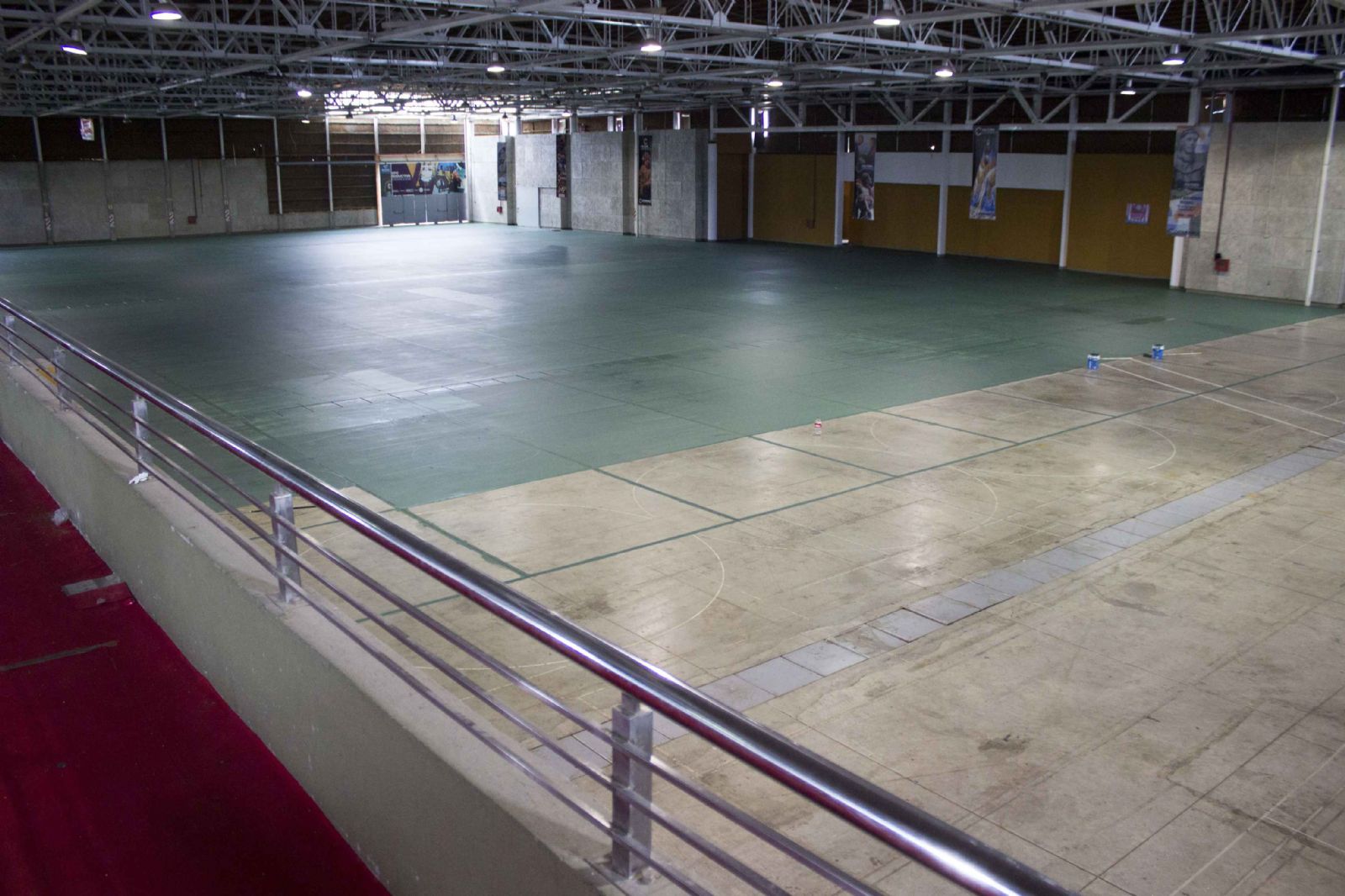 del piso del Salón Mayor, tarea que se realiza por estos días a partir de