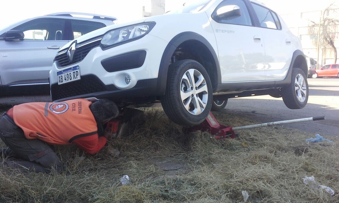 Un conductor debió ser asistido esta mañana por personal de la Dirección de Defensa Civil, luego de realizar una mala maniobra en el sector de estacionamiento de la Maternidad 25 de Mayo.