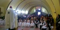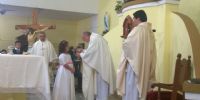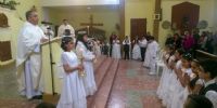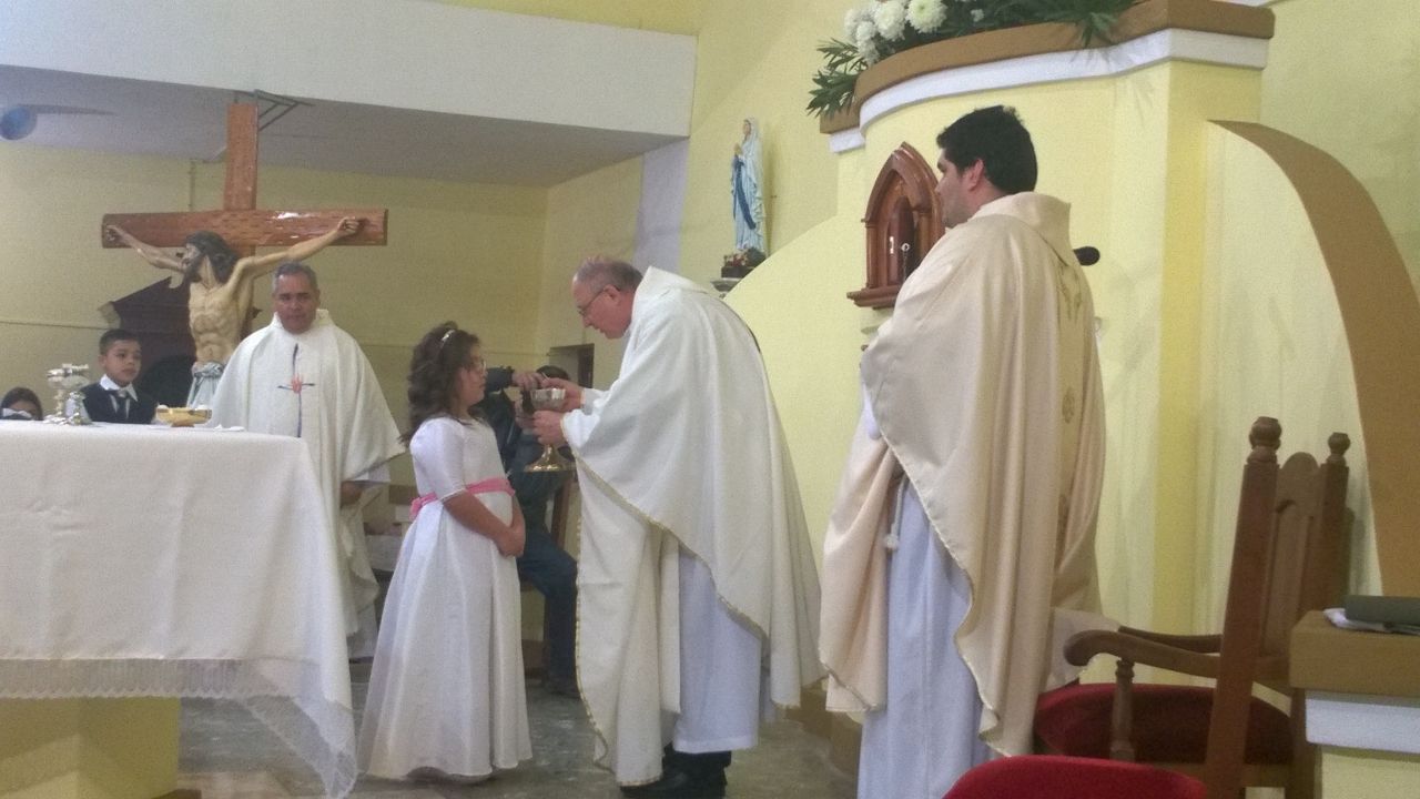 eucarístico y los niños recibieron a Jesús Sacramentado por primera vez de