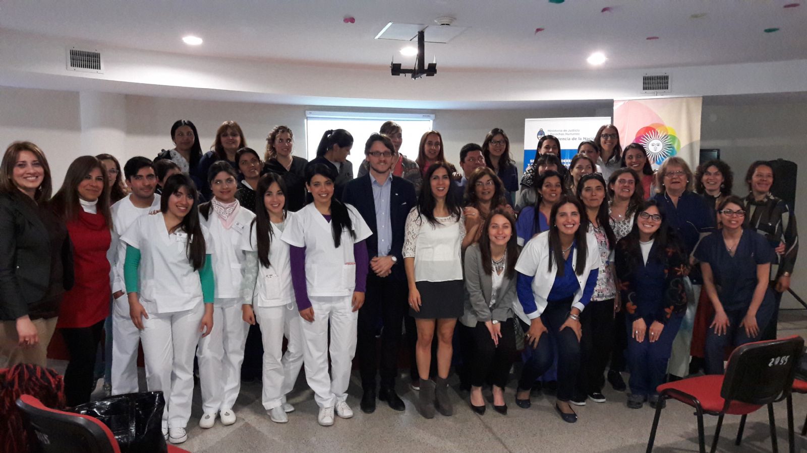 obstétricas, enfermeras y asistentes sociales que presenciaron la capacitación,