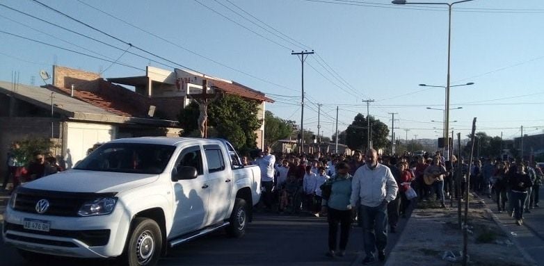 Al llegar al predio parroquial, celebraron la Santa Misa,