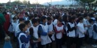 cruz en su pecho. Fueron acompañados por sus catequistas y familiares en una