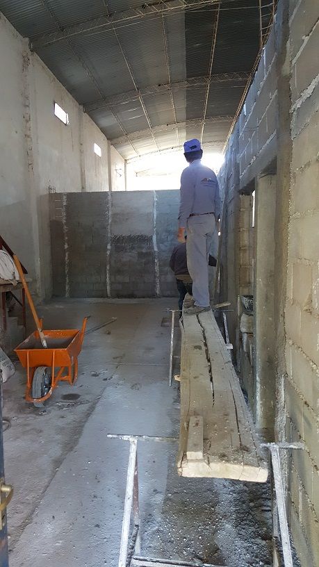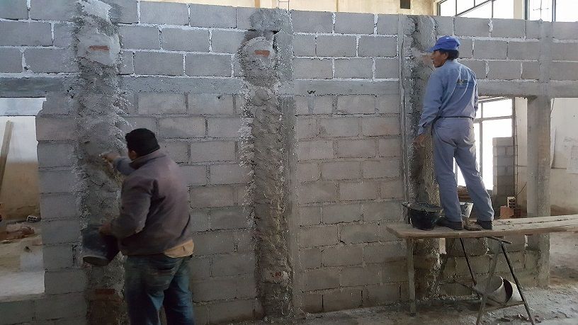 En planta baja se están realizando revoques y mampostería.