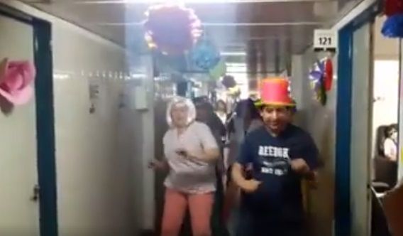 Personal de los servicios de Onocología, Hematología, y Cuidados Paliativos del Hospital de San Juan Bautista, sorprendieron hoy a los pacientes que se encuentran internados, con una coreografía del tema "Despacito".