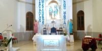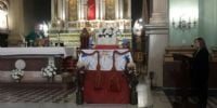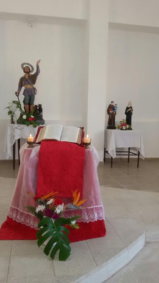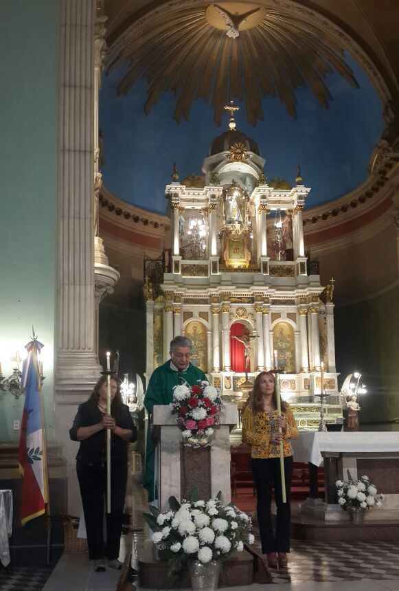 velas y adornada con flores. También se embelleció de manera especial el ambón,