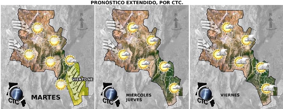 departamento La Paz. Es posible que por la tarde las ráfagas ronden los 40-60