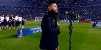 Mientras los hinchas coreaban, Ulises Bueno cantó la estrofa