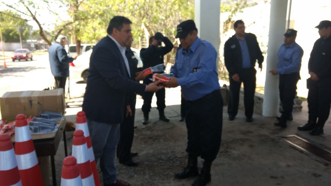 luminosos y silbatos; elementos que fueron recibidos por Ramón Tejeda, Comisaría