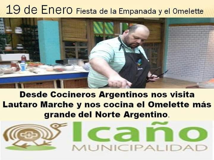 Recreo (C) - El próximo viernes 19 de enero, Lautaro Marche de "Cocineros Argentinos", estará visitando Icaño, y compartiendo la noche de la Fiesta de la Empanada y el Omelet.