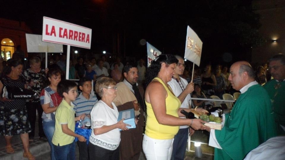 Luego de la oración de los fieles, representantes de las distintas comunidades: Las Pirquitas, Sierra Brava, Pomancillo Este, San Antonio, La Tercena, La Carrera, La Falda, Vista Larga y San José, acercaron como ofrenda los frutos de la tierra; mientras las autoridades civiles y miembros de la Comisión Pro Beatificación acercaron el pan y el vino.