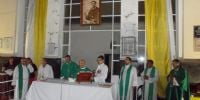 Seguidamente, se celebró la Santa Misa, presidida por el Vicario General de la Diócesis, Pbro. Julio Quiroga del Pino, y concelebrada por el Vicario Episcopal de Pastoral, Pbro. José Antonio Díaz; el párroco anfitrión. Pbro. Juan Olmos; los párrocos de Ambato y de Capayán, Pbros. Jerónimo Paz y Marcelo Amaya, respectivamente; los Pbros. Daniel Votero, párroco de Nuestra Señora de Lourdes, Unquillo, y Julio Monje de la Parroquia de los Milagros, en el barrio Guiñazú, de Córdoba.