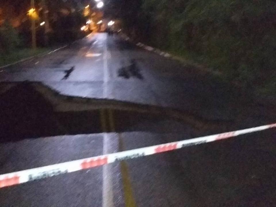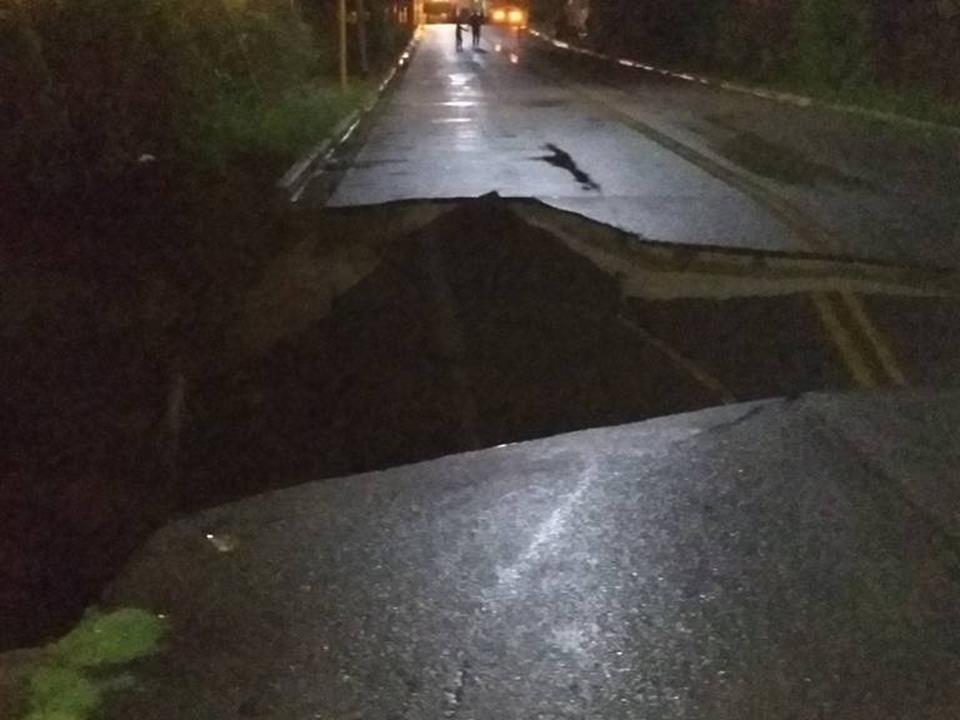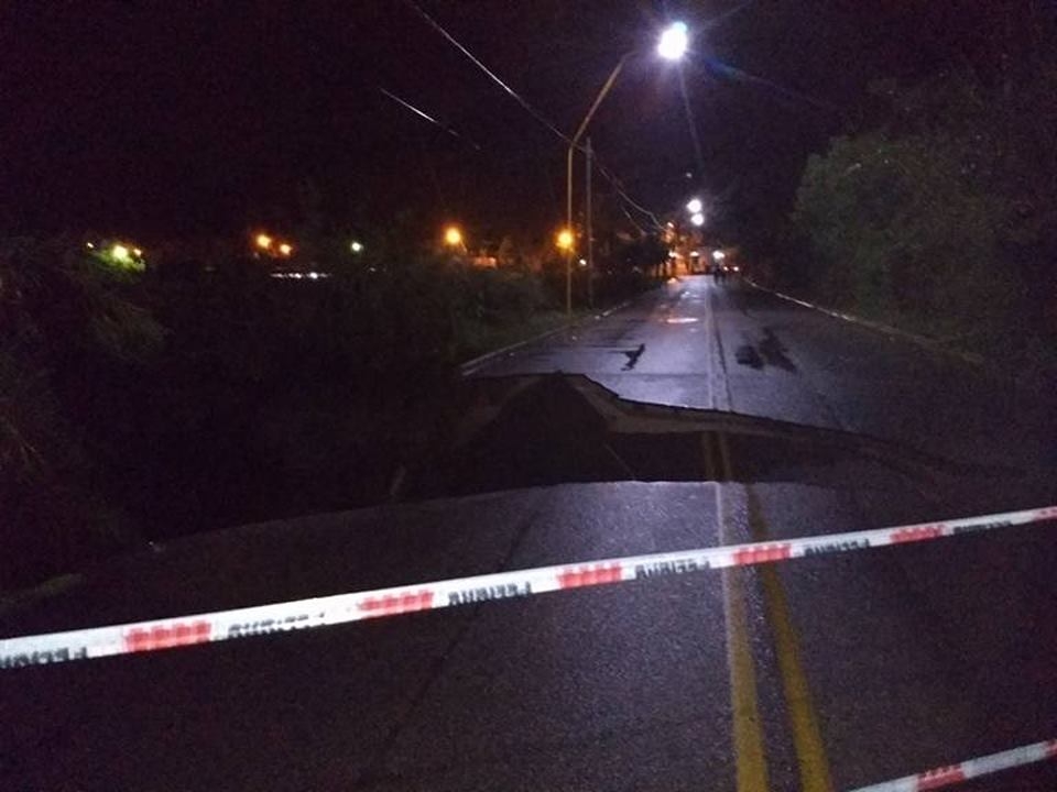 El asfalto se derrumbó y se hundió la calle que atraviesa el arroyo de La Cañada.