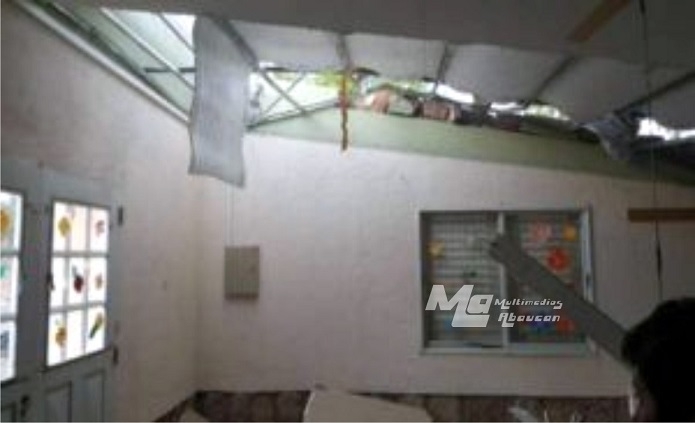 Cabe recordar que la evaluación y reparación de los daños producidos corresponde al área de infraestructura escolar, perteneciente el Ministerio de Educación de la Provincia quienes hasta el momento no se hicieron presentes en esta ciudad, más aun teniendo en cuenta que el pronóstico del tiempo anuncia lluvias paras las próximas horas, lo que agravaría la situación. Fuente: El Abaucán Digital.