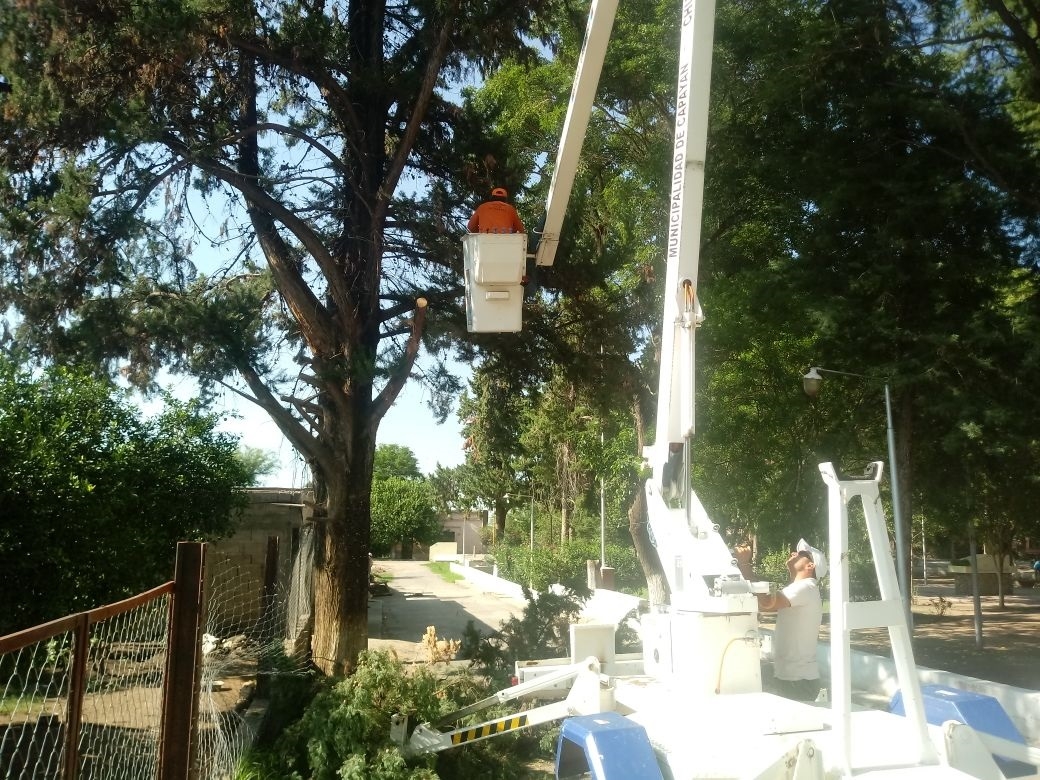 Y agregó: “Además, se retiraron dos pinos de la casa de la familia Vitale, ya que estaban muy cerca de la vivienda y causaban un gran riesgo para sus moradores”.