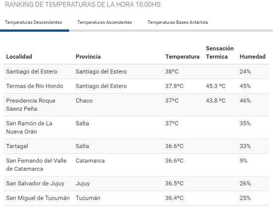 Se ubica en el sexto puesto del ranking nacional, que encabezan Santiago del Estero Capital; Termas de Río Hondo y Roque Sáenz Peña, en Chaco. Se espera la llegada de lluvias. Conocé cómo estará el clima en los próximos días.