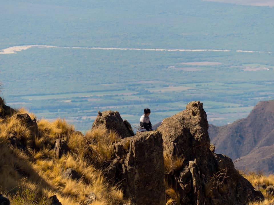 Pusimos las carpas muy cerca de "la laguna", desde donde partimos por "el filo" de la cumbre (la divisoria de aguas de la sierra). 9 Km. después llegamos a la roca más alta que conforma una de las puntas de la cresta del cerro que observamos desde la ciudad Capital.