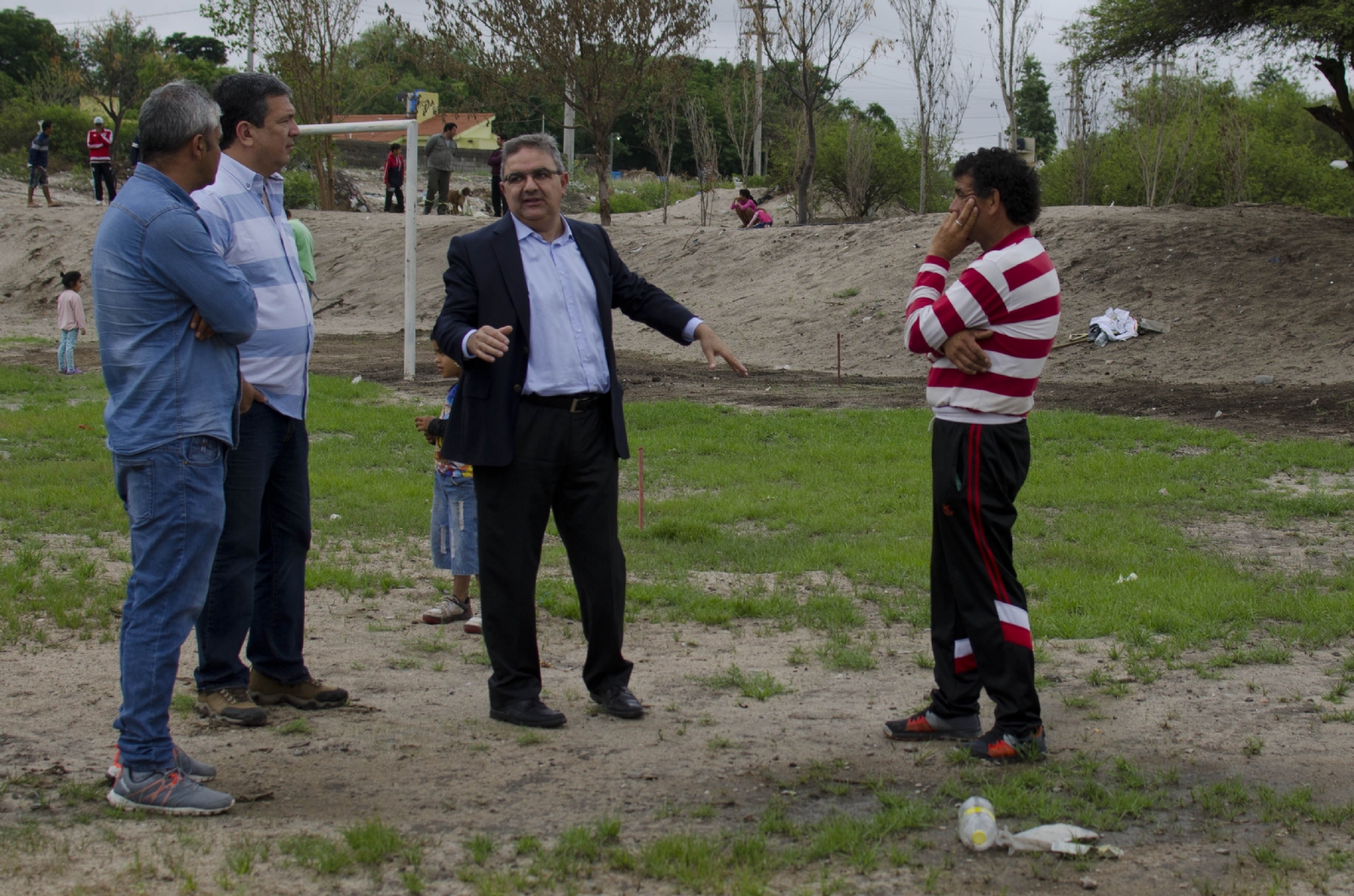 El intendente Raúl Jalil, acompañado por el secretario de Obras Públicas, Eduardo Niederle, y el concejal Ariel Pedemonte, visitó el nuevo predio formado por los vecinos para dialogar sobre el aporte que realizará el municipio para apuntalar la iniciativa vecinal.
