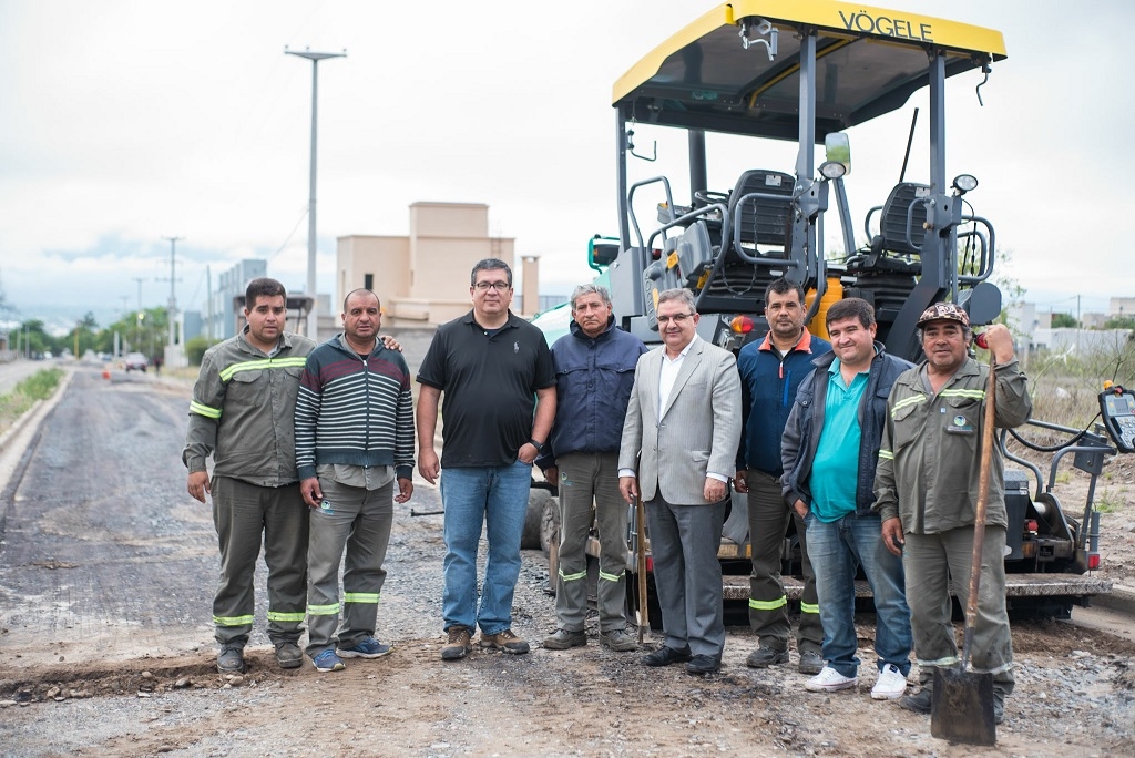 El intendente Raúl Jalil, acompañado por el secretario Niederle, supervisó el avance de los trabajos de posteriores a la colocación de alquitrán y compactación del suelo para iniciar la etapa de colocación de la carpeta asfáltica.