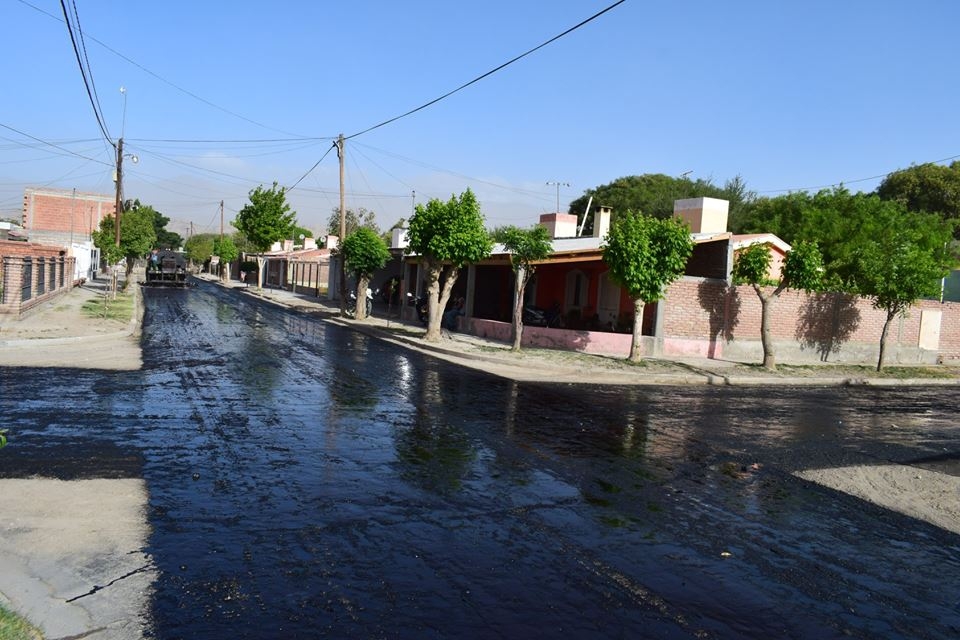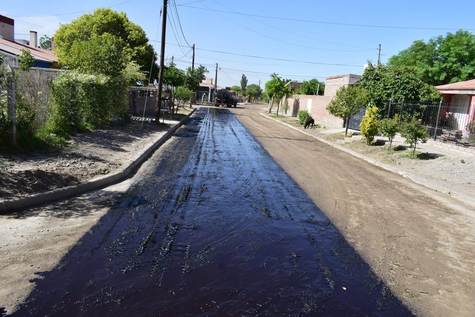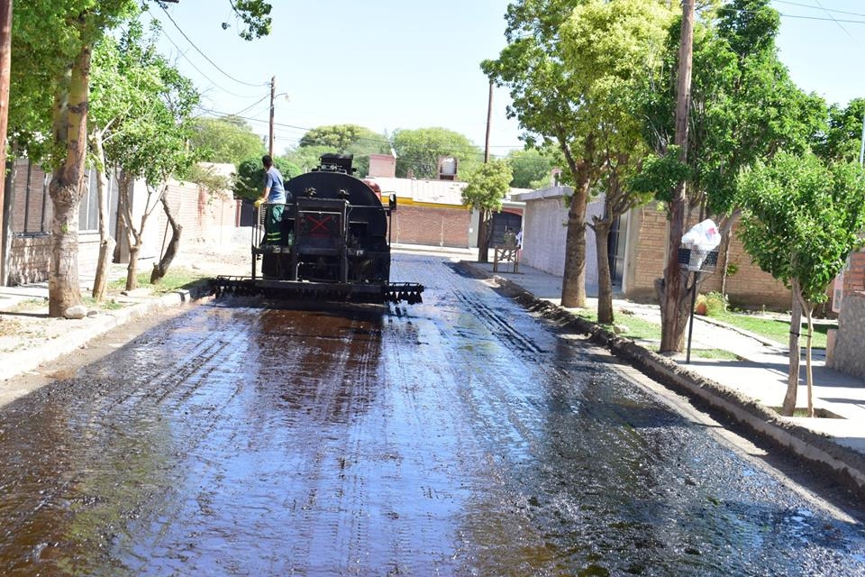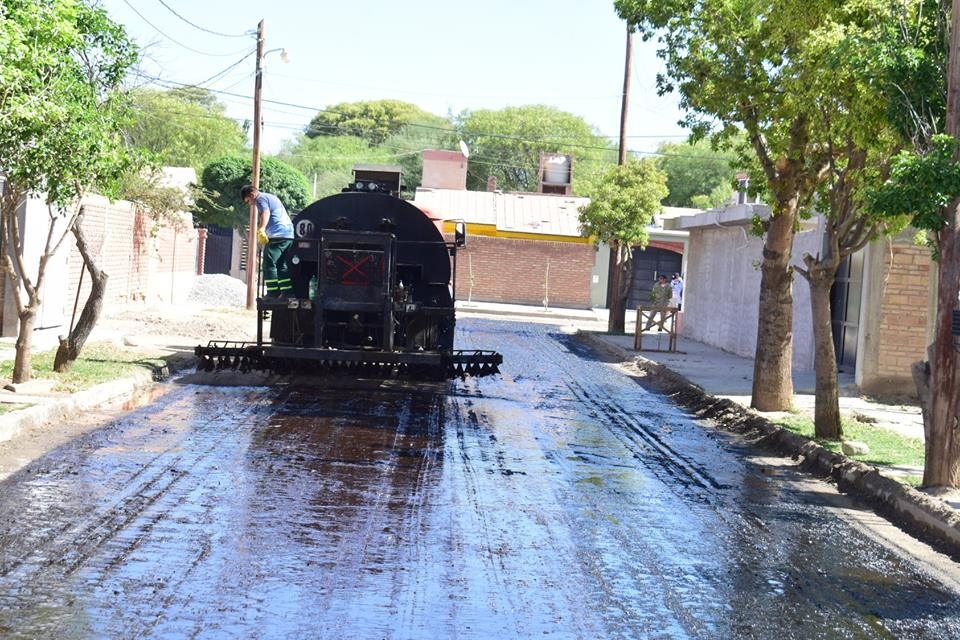 Durante todo el sábado, el personal de la Secretaría de Obras y Servicios Públicos, Departamento Vial de Santa María y personal de Vialidad Provincial, en un trabajo en equipo, llevaron a cabo, en el barrio San Juan Bautista, todos los trabajos previos y el correspondiente riego de imprimación antes de la pavimentación del mismo.