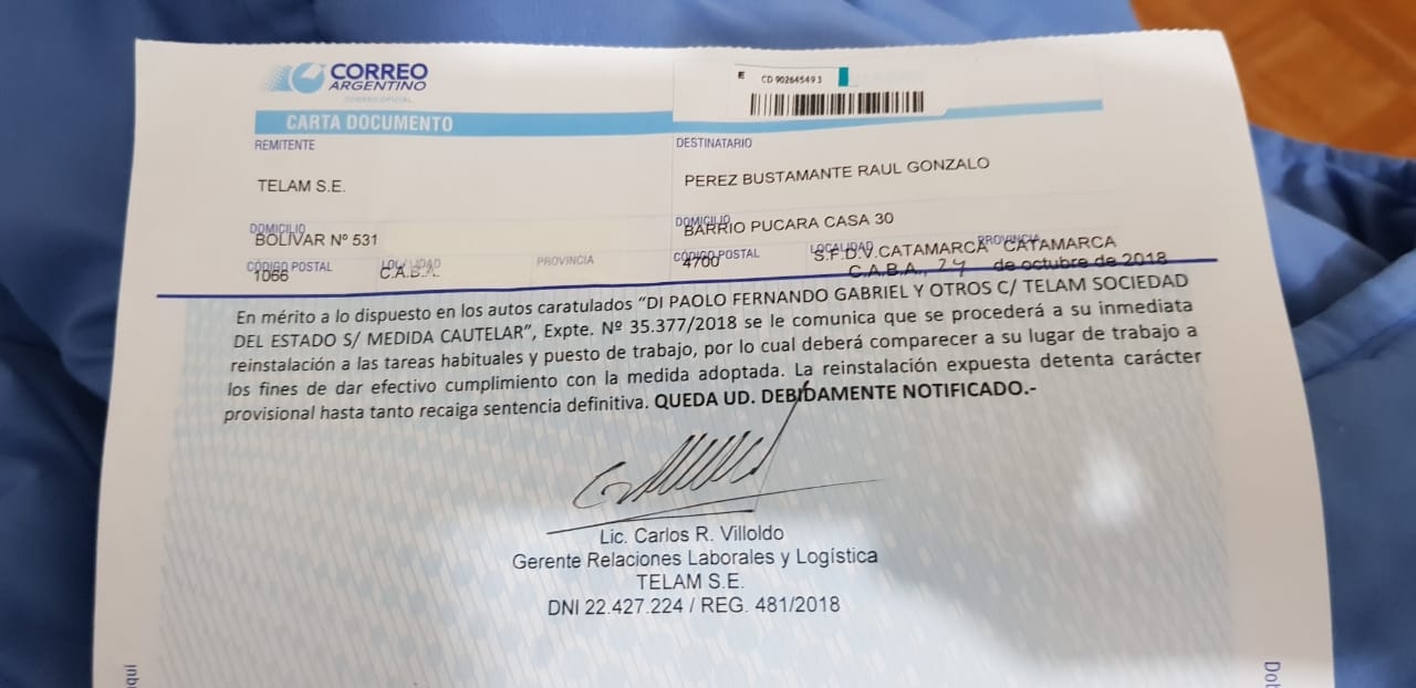 Finalmente, la Justicia resolvió la reincorporación, a través de ocho medidas cautelares, de 138 trabajadores de la agencia de noticias Télam, entre los que se incluye al periodista catamarqueño.