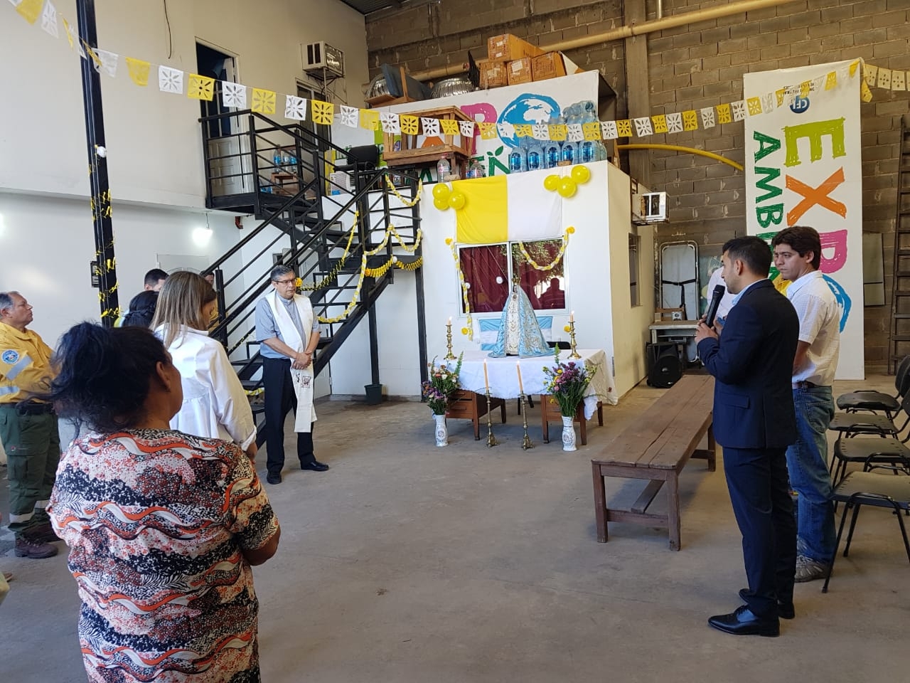 La Imagen peregrina partió desde la Catedral Basílica llevada por el Rector del Santuario Mariano, Pbro. José Antonio Díaz, arribando a la nueva base ubicada en calle Alpatauca 175, del barrio Eva Perón, que fue adornada con gallardetes, globos y banderas con los colores papales. Allí fue recibida con mucha alegría y devoción por el Jefe de la Brigada, Cristian Velardez, y miembros del grupo, acompañados por el Secretario de Ambiente, Dr. Juan Rosales, junto con vecinos del sector, quienes vivieron con mucha emoción la presencia de la Madre Morenita.