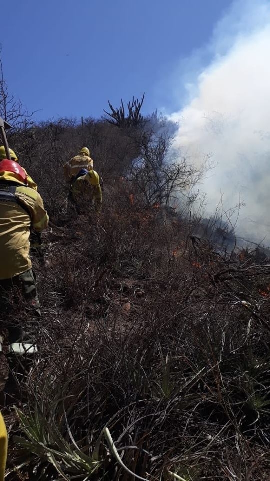 El fuego se extendió por el lugar y los brigadistas luchan por combatirlo a pesar de las dificultades por la vegetación seca, sumado a que en horas de la tarde podría incrementar la velocidad del viento.