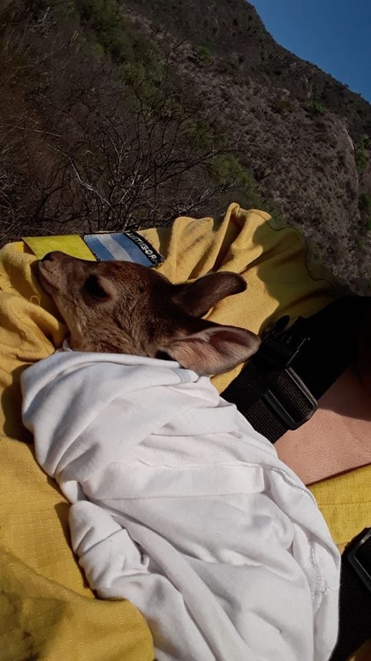 En el lugar, los brigadistas rescataron a una cría de corzuela que estaba en medio de las llamas. (Fotos: Facebook Roxana Mercado).