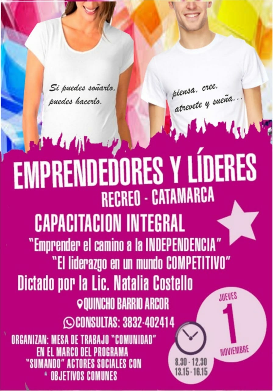 martes, 30 de octubre de 2018 14:12 martes, 30 de octubre de 2018 14:12 Recreo © La apertura de dicha Capacitación se llevará a cabo en El Quincho de Barrio Arcor, este jueves 1 de noviembre, a las 8.30, y se desarrollará en 3 encuentros (2 en noviembre y 1 en diciembre).
