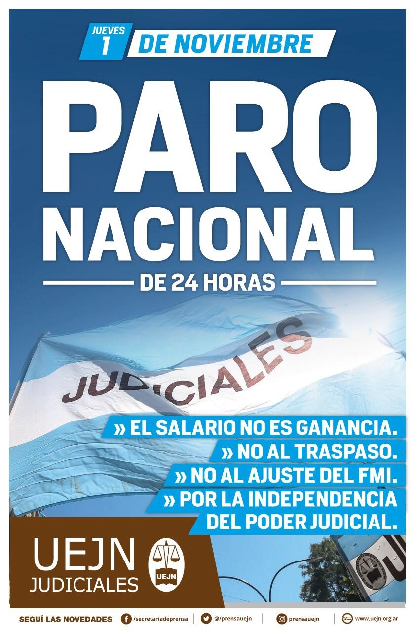 Para mañana jueves, judiciales a nivel nacional convocaron a una nueva medida de fuerza con la misma modalidad, y Catamarca se adhiere a la jornada completa de paro.