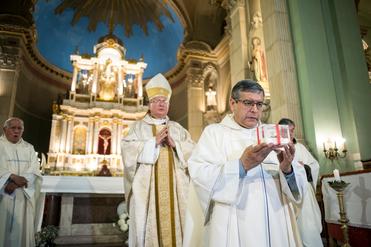 Antes de impartir la bendición final, las reliquias fueron llevadas en procesión hasta el altar ubicado en una de las naves laterales de la Catedral Basílica, donde quedaron expuestas a todos los fieles catamarqueños y peregrinos que lleguen a pedir su intercesión.