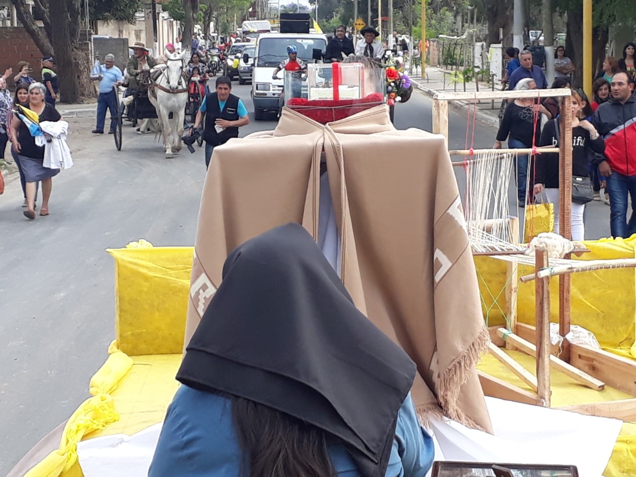Se desplegaron coloridos homenajes culturales con música, canto y danza, y continuó la multitudinaria marcha hacia Piedra Blanca, con las reliquias colocadas sobre un altar preparado en una carroza temática, donde se observaban elementos de la labor familiar, como el telar y el arado. Detrás iban dos sulkys llevando al Obispo y al Párroco, y a cada paso se sumaban más vehículos y gente de a pie que se volcó a la vera de la ruta provincial N° 41 lanzando papelitos picados al aire, y agrupaciones de gauchos acompañaron todo el trayecto.