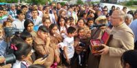 En la rotonda de San Antonio esperaban el párroco, Pbro. Juan Olmos, junto con las autoridades civiles encabezadas por el Intendente de Fray Mamerto Esquiú, Dr. Guillermo Ferreyra, y cientos de niños de las escuelas del medio, gauchos a caballo y pobladores llegados desde distintos puntos del departamento.
