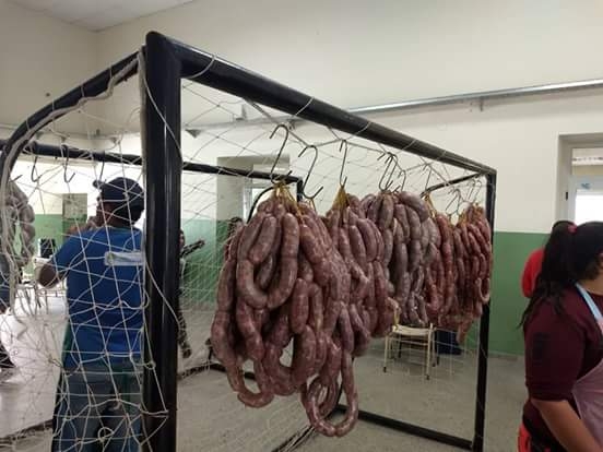 Se elaboraron las variantes de chacinados: chorizo puro de cerdo, mixto, criollo, e italiano, cabra pura, cabra criolla, arrollados, bondiola, mortadela, morcilla, huesos de cerdos, morcillon y salame.