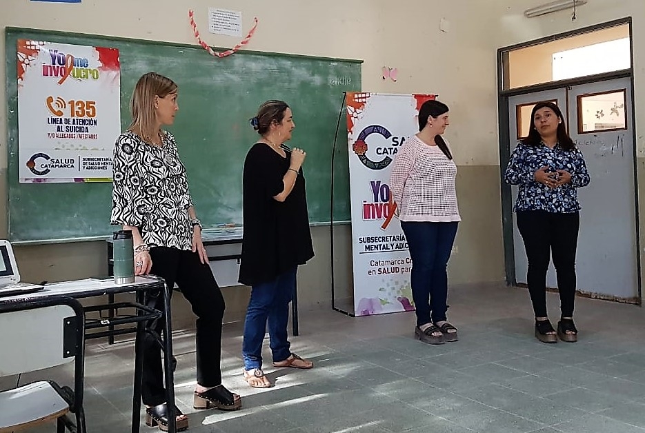 Los disertantes fueron la directora de Políticas de Promoción y Prevención de la subsecretaria de Salud Mental y Adicciones, Lic. Judith Bogomolny junto a Carmen Rodríguez, Lorena Gerde y Marian Ramos y acompañó la Dra. Sol Pardo, directora Asistente del Área Programática, quienes dieron un taller de prevención de consumo problemático en la Escuela Nº79 Manuel Belgrano de Recreo, departamento La Paz.
