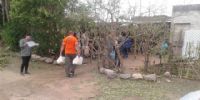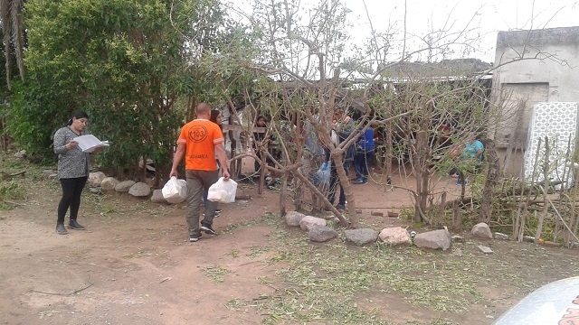 Conjuntamente con el personal del Ministerio de Desarrollo Social y distintas áreas del municipio local, se hizo entrega de agua mineral, módulos alimentarios, ropa, colchones, chapas y nylon en varias viviendas afectadas por la lluvia, el viento y el granizo.