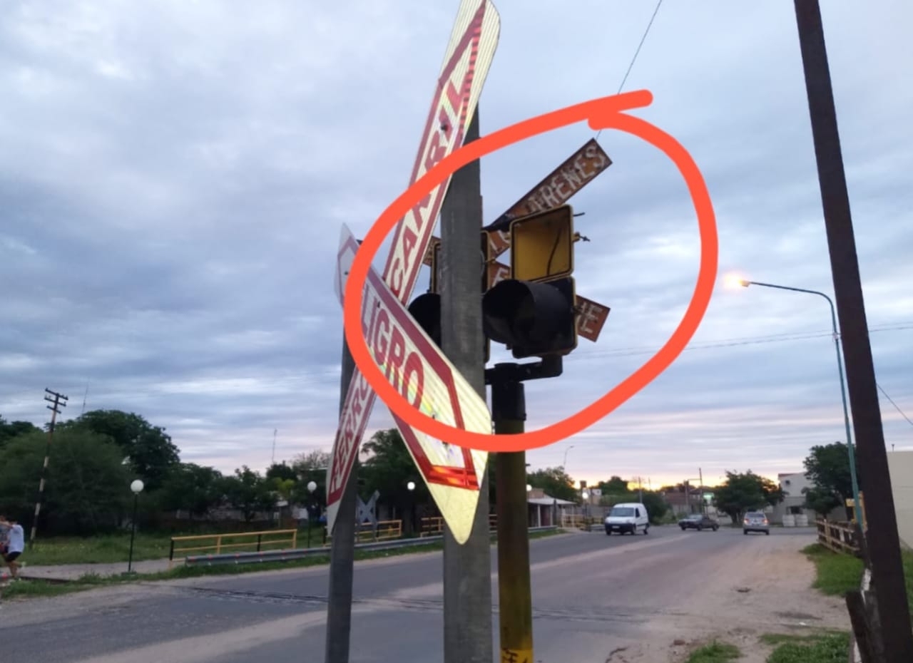 Hoy, los semáforos están rotos, destruidos, uno detrás de un cartel cruz, y los cables y llaves para activarlos desde la Estación de Trenes, desaparecieron, “los robaron”, según nos dijeron.
