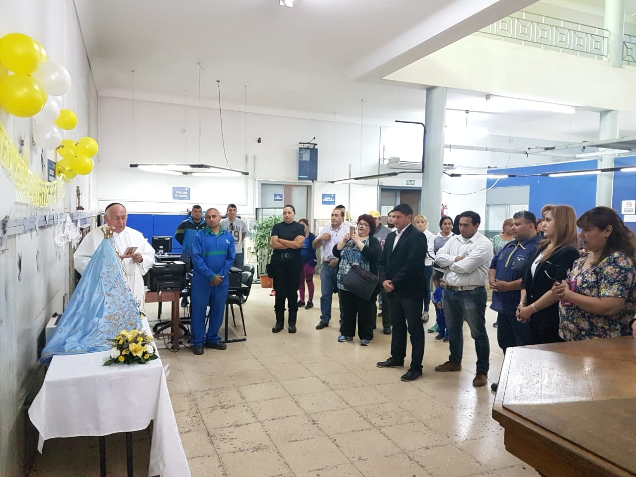 También en la mañana de la misma jornada, el Correo Argentino fue bendecido con la presencia de la Virgen Morenita. Fue recibida por las autoridades y empleados que allí se desempeñan, y colocada en un altar preparado para esta ocasión especial.