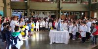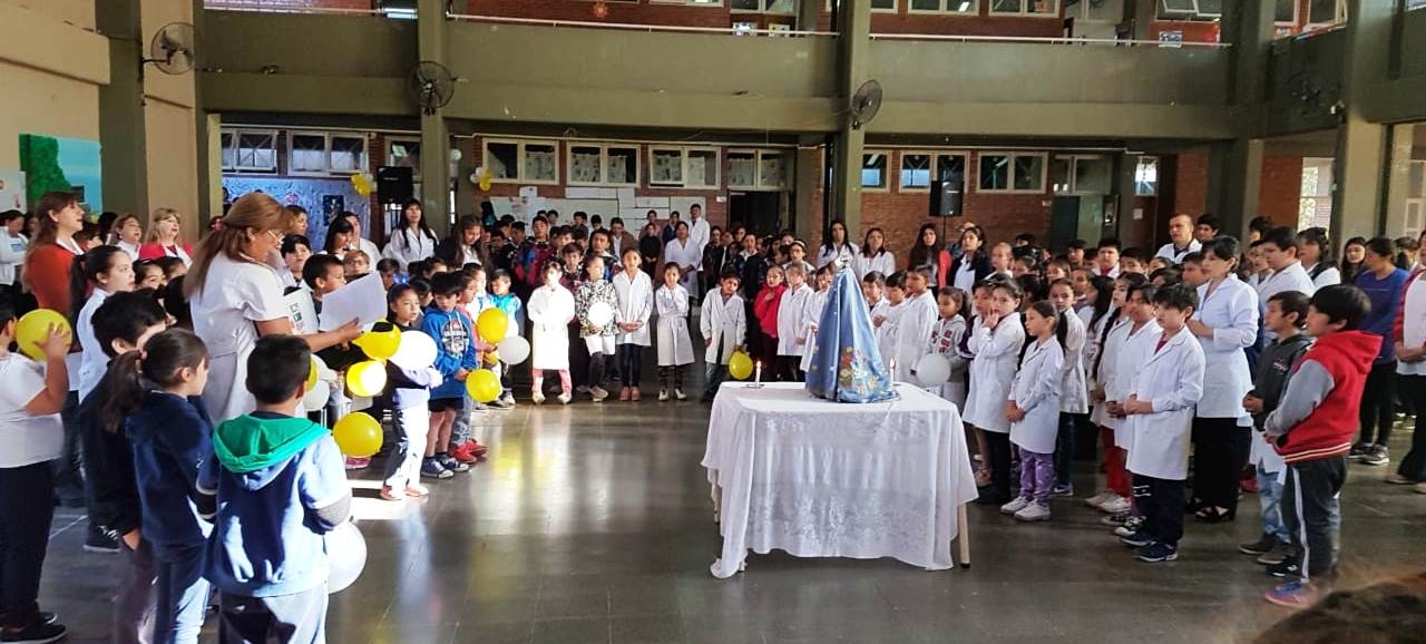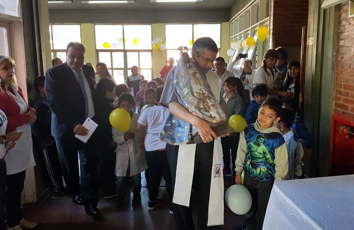 En la mañana del miércoles 14 de noviembre, los alumnos, directivos y docentes de la escuela del barrio Huayra Punco, 920 Viviendas, vivieron una fiesta con la visita de la Madre del Valle, a quien recibieron con mucha alegría en las instalaciones ornamentadas con globos y gallardetes.