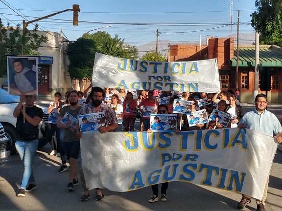Con la presencia de los padres de Agustín, hermanas, familiares, amigos y gente que apoya esta causa, se marchó a la vuelta de la plaza al grito de justicia, justicia. El recorrido terminó en la vereda de la fiscalía donde la gente dejó los carteles con la cara del joven locutor Agustín Lagoria.