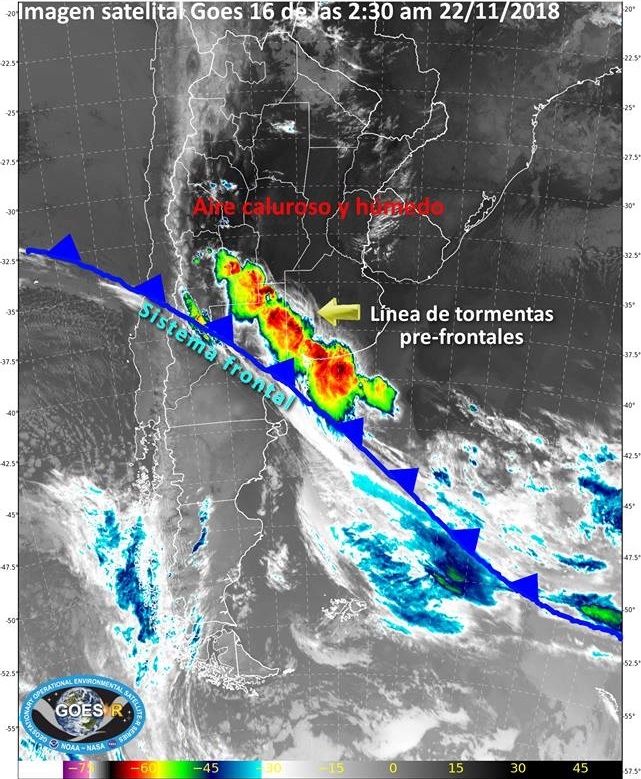 Al mismo tiempo que el viento se haga presente, notaremos en el cielo muchas nubes convectivas (de tormenta) desarrollándose para formar celdas tormentosas que dejarán precipitaciones en gran parte del territorio provincial entre la tarde y la noche.